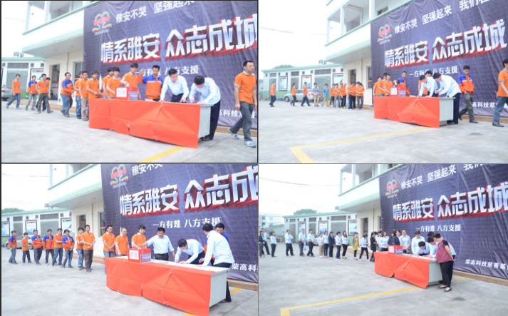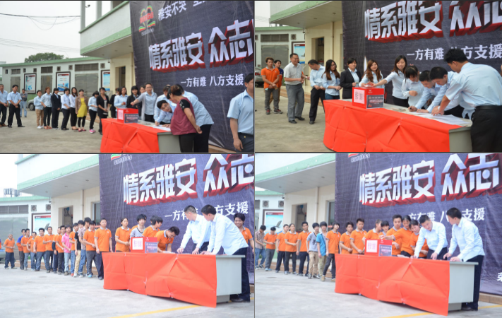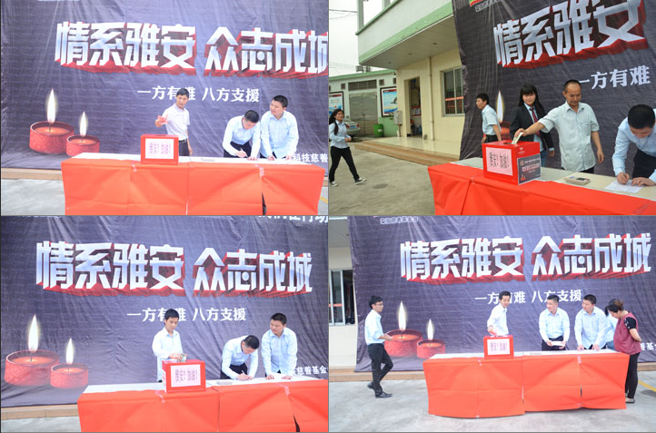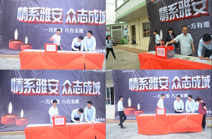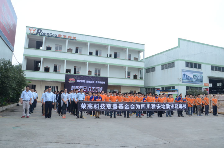 全體榮高家人積極行動(dòng)起來,發(fā)揚(yáng)人道主義精神,獻(xiàn)出一片真情,使此次地震災(zāi)區(qū)的同胞能多一份溫暖、少一份痛苦。讓我們共同努力,幫助地震災(zāi)區(qū)同胞渡過難關(guān),您的愛心捐款數(shù)額,無論多少都體現(xiàn)能你的情意,你的愛心捐助數(shù)額,我們將在企業(yè)文化宣傳版中給予公布。全體榮高家人們,讓我們的大愛持續(xù)傳遞,將您的愛心傳遞給最需要幫助的雅安同胞。在這一刻我們都是雅安人,一起加油。