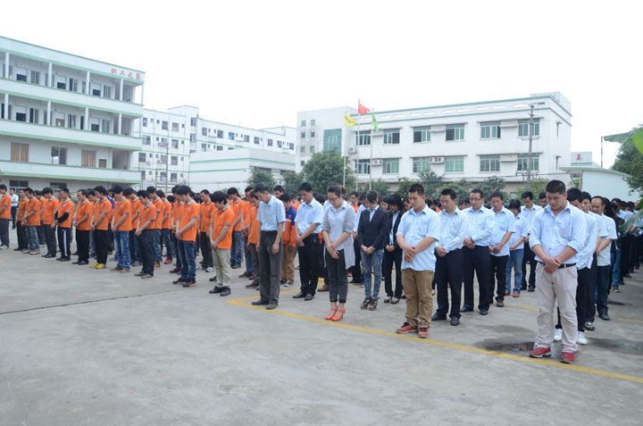 大會(huì)開始后,全體榮高人為在四川省雅安地震中死去的同胞們默哀1分鐘