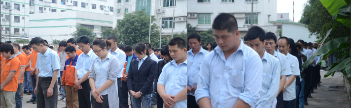 全體榮高人都低頭心中為雅安市同胞默哀、祈福