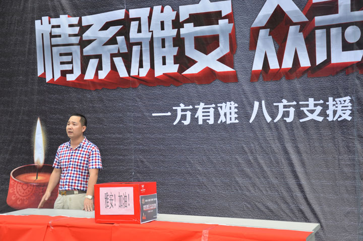 雅安地震災(zāi)區(qū)災(zāi)情一發(fā)生,黨和國(guó)家領(lǐng)導(dǎo)高度重視,李克強(qiáng)總理及多位國(guó)家領(lǐng)導(dǎo)人親臨災(zāi)區(qū)慰問探望,指揮抗震救災(zāi)。全國(guó)軍民、海外華僑及社會(huì)各界人士,紛紛以各種形式支援災(zāi)區(qū)。中國(guó)國(guó)家慈善總會(huì)、紅十字會(huì)、及各級(jí)慈善組織都紛紛向地震災(zāi)區(qū)捐款、捐物,幫助雅安災(zāi)區(qū)群眾早日走出困境。