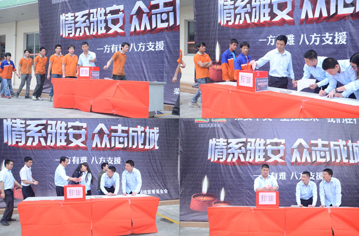榮高科技2013年4月23日下午5:00總公司全體職工在公司廣場(chǎng)集合,為雅安地震災(zāi)區(qū)捐款